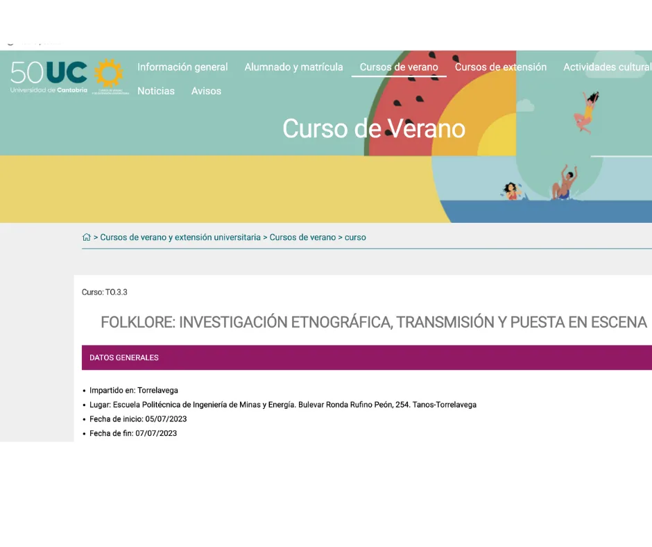 Sesión formativa para el curso de verano de la Universidad de Cantabria Folklore: investigación etnográfica, transmisión y puesta en escena en la que hablaré de las marzas dentro de los rituales de invierno en Cantabria, su tipología y contexto social, cultural y antropológico desde una perspectiva de nuevas ruralidades.