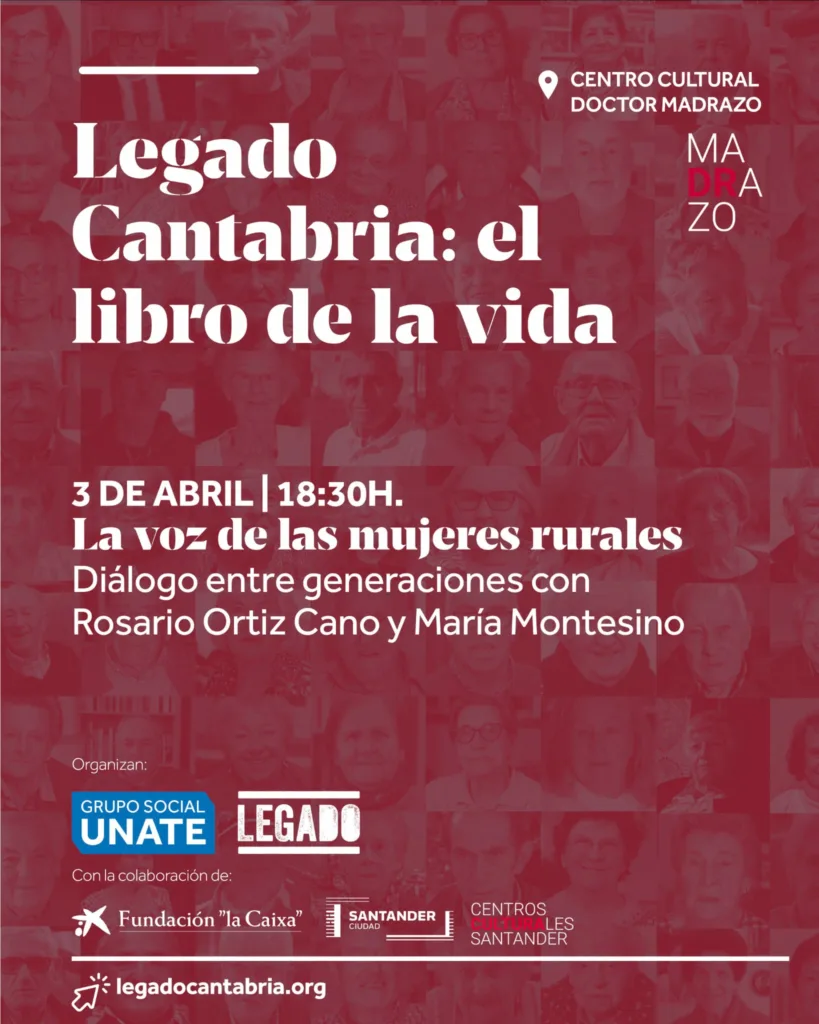 Participaré en este diálogo intergeneracional junto a Rosario Ortiz Cano, una de las mujeres rurales participantes en Legado, un proceso de construcción de la memoria oral de Cantabria a través de las historias de vida de personas de 70 años o más.