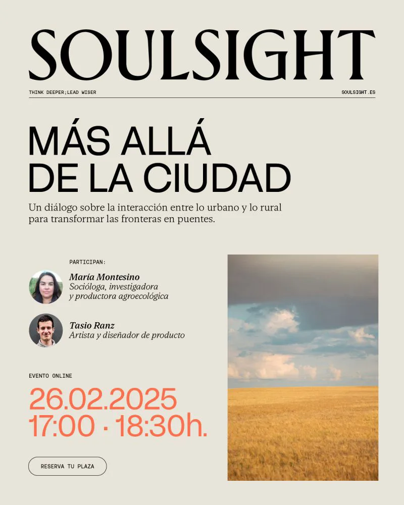 Inscripciones: https://soulsight.es/inscripcion-mas-alla-ciudad/?utm_source=linkedin_organic&utm_medium=banner&utm_id=evento